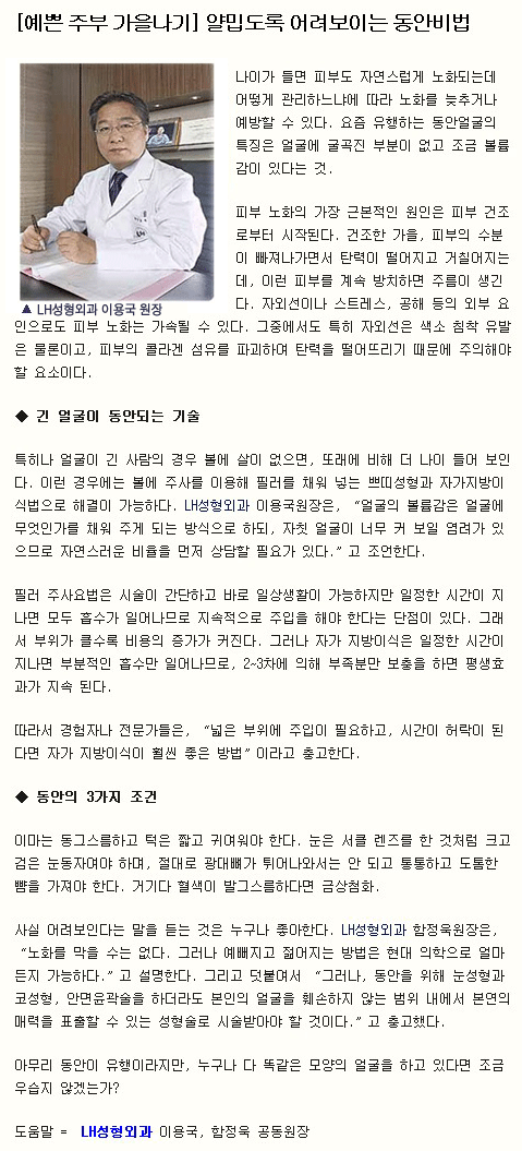 • [스포츠서울닷컴 2007년 10월 23일자] [예쁜 주부 가을나기]얄밑도록 어려보이는 동안 비법